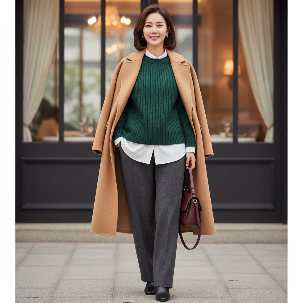 50대는 “좋은 옷이 진짜 빛나는 시기”예요. 너무 트렌드에 끌려가지 않아도 되고, 소재와 실루엣만 좋아도 분위기가 나옵니다 🙂