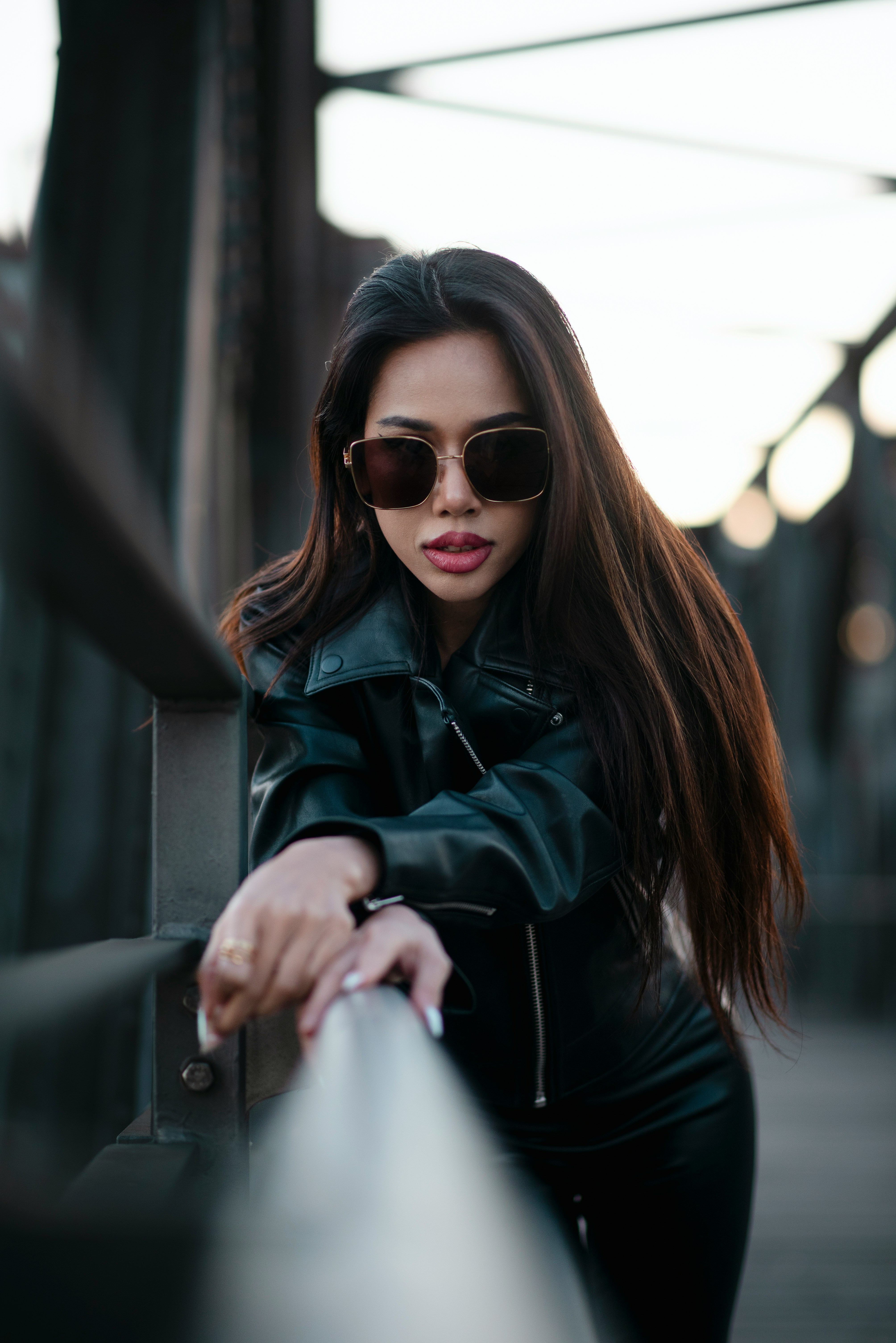 레더를 강하게 쓰기보다, 워시드 특유의 부드러운 질감이나 파티나의 은은한 광으로 분위기를 내보세요. 레더 자켓 + 롱 스커트 조합이 우아하고 부담이 적습니다. 립 컬러는 버건디나 로즈 계열로 살짝 맞추면 통일감이 생겨요 🙂
