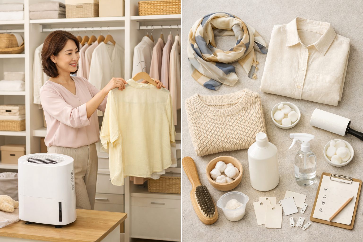 - 보관: 옷장 환기 + 제습제, 옷 사이 간격 확보